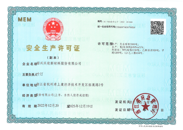 紹興興欣新材料股份有限公司成立于2002年06月27日,占地面積122畝,位于杭州灣上虞經(jīng)濟(jì)技術(shù)開發(fā)區(qū)拓展路2號(hào),現(xiàn)有職工200余人,專業(yè)技術(shù)人員50余人;博士、碩士研究生30余人組成的一支知識(shí)型、專業(yè)化的技術(shù)科研團(tuán)隊(duì)。公司面向全球市場(chǎng),專業(yè)開發(fā)電子化學(xué)品、環(huán)保化學(xué)品、醫(yī)藥中間體、高分子材料等先進(jìn)新材料重點(diǎn)領(lǐng)域的省級(jí)科技型企業(yè);建有浙江上虞、安徽東至兩個(gè)生產(chǎn)基地。目前為“國(guó)家高新技術(shù)企業(yè)”、浙江省“隱形冠軍”企業(yè)、浙江省專精特新中小企業(yè);建有“省級(jí)”研究開發(fā)中心,共建天津大學(xué)浙江紹興研究院電子化學(xué)品研發(fā)中心。